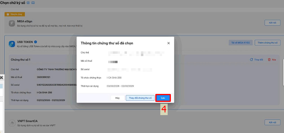 Đơn vị kiểm tra lại đúng chữ ký số bấm Lưu.