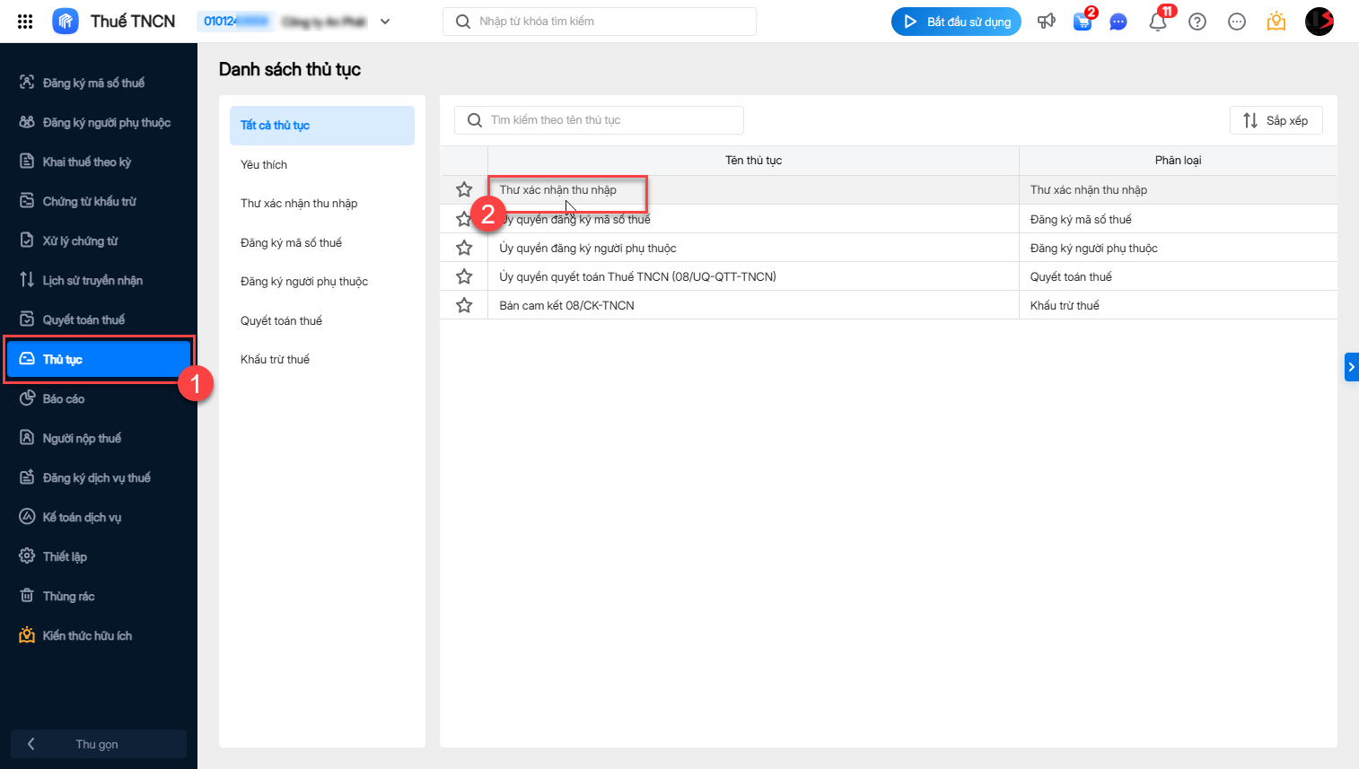 Tại Thủ tục\chọn Thư xác nhận thu nhập.