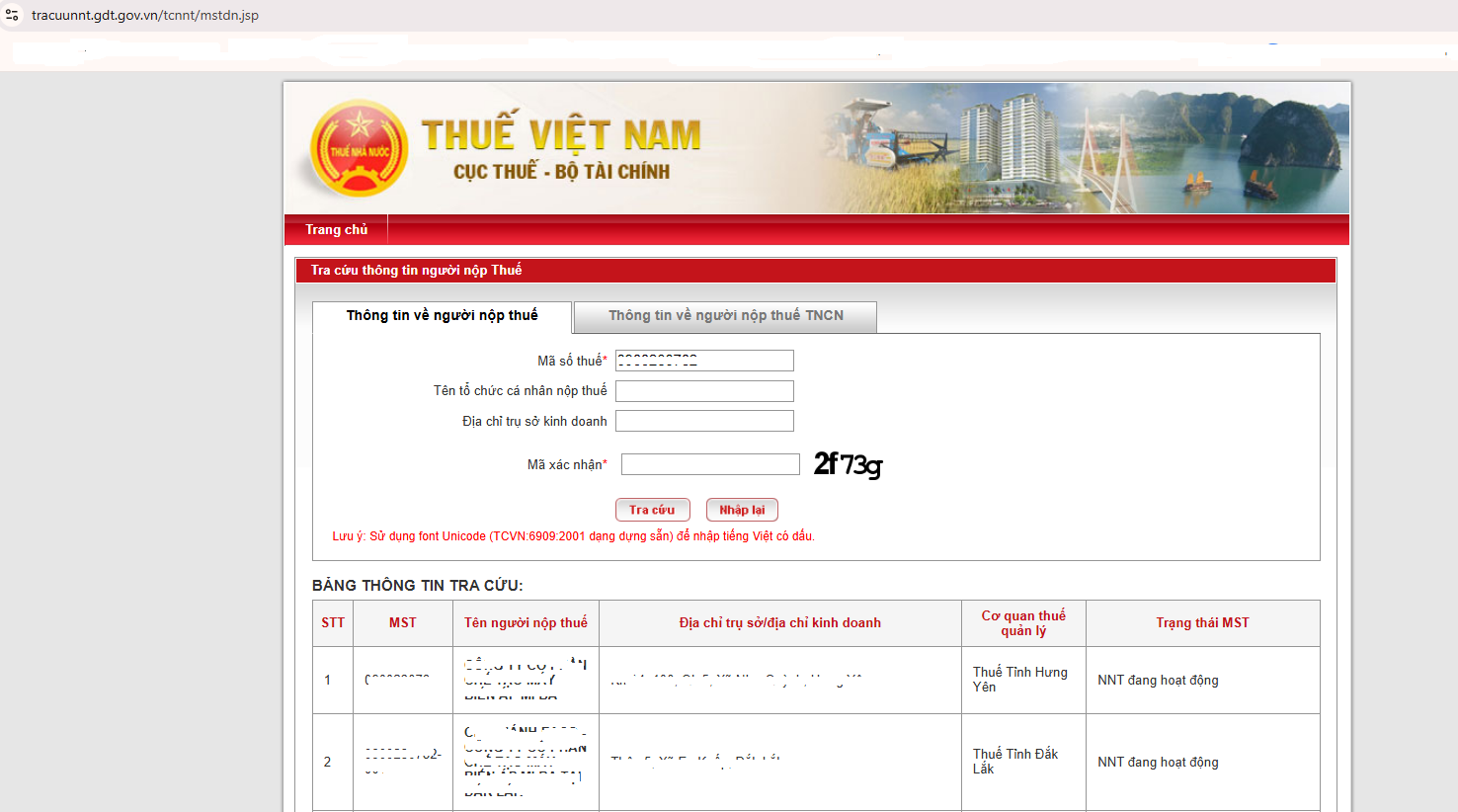 2. Kiểm tra tình trạng hoạt động của mã số thuế