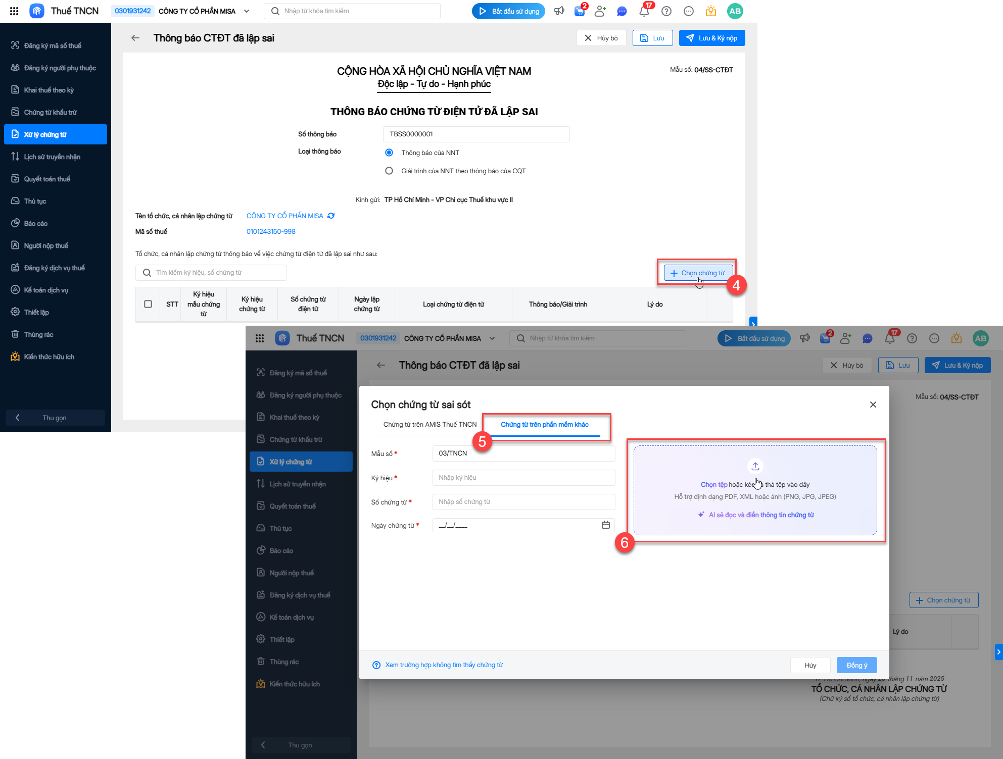Bài viết hướng dẫn lập thông báo chứng từ điện tử đã lập sai (số điện thoại, địa chỉ) cho chứng từ đã phát hành tại phần mềm nhà cung cấp khác.