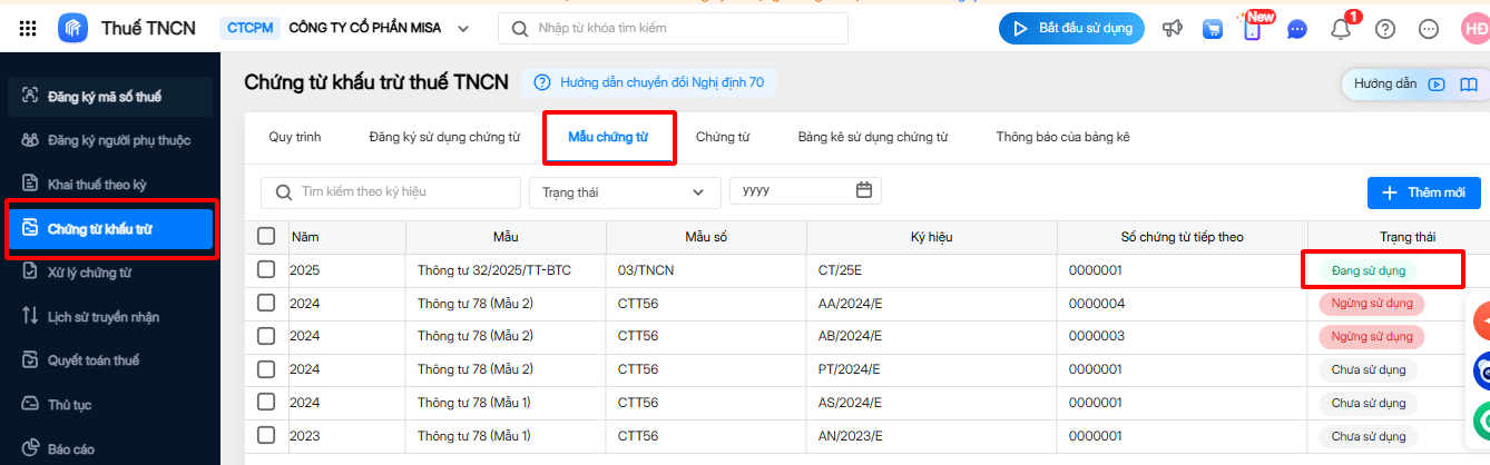 Theo Thông tư 32/2025/TT-BTC quy định về mẫu và ký hiệu chứng từ khấu trừ thuế như sau: