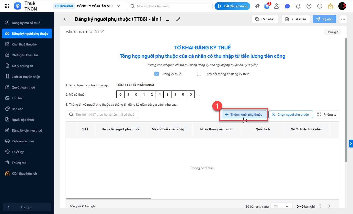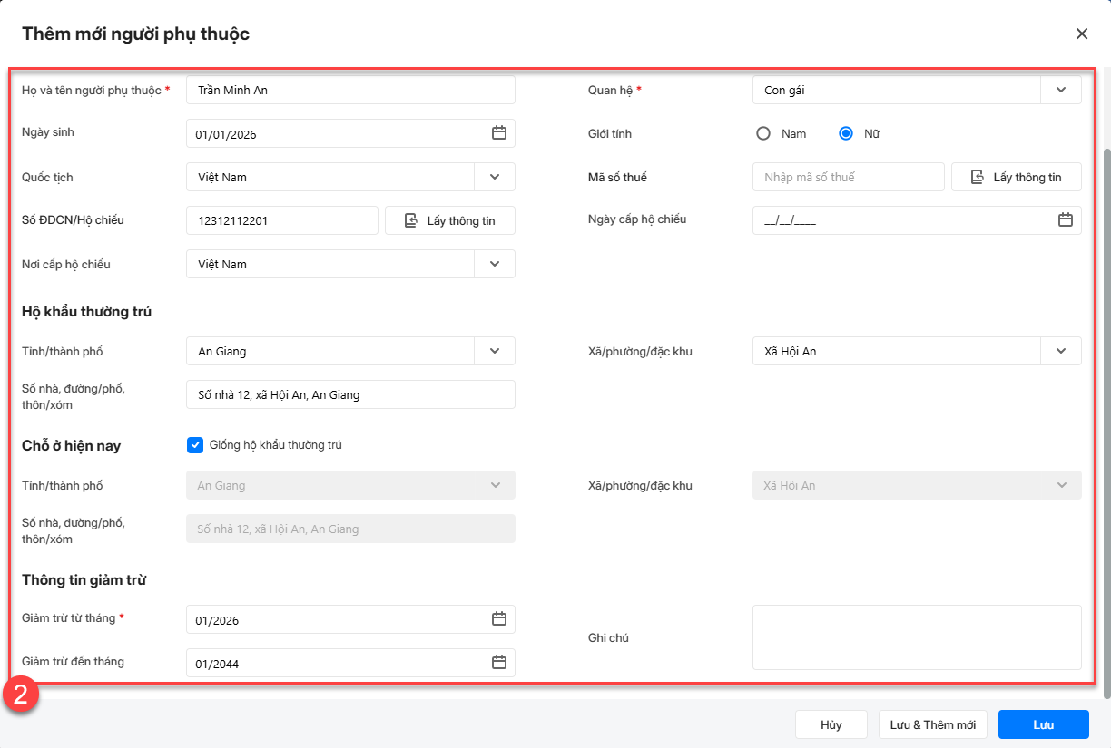 Thêm nhanh người phụ thuộc khi lập tờ khai đăng ký người phụ thuộc