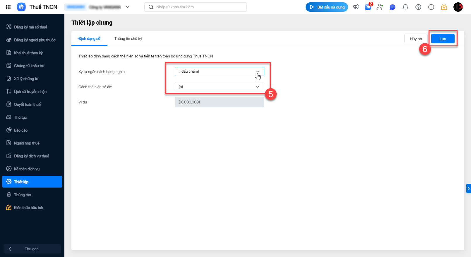 Bước 1. Truy cập chức năng thiết lập định dạng số
