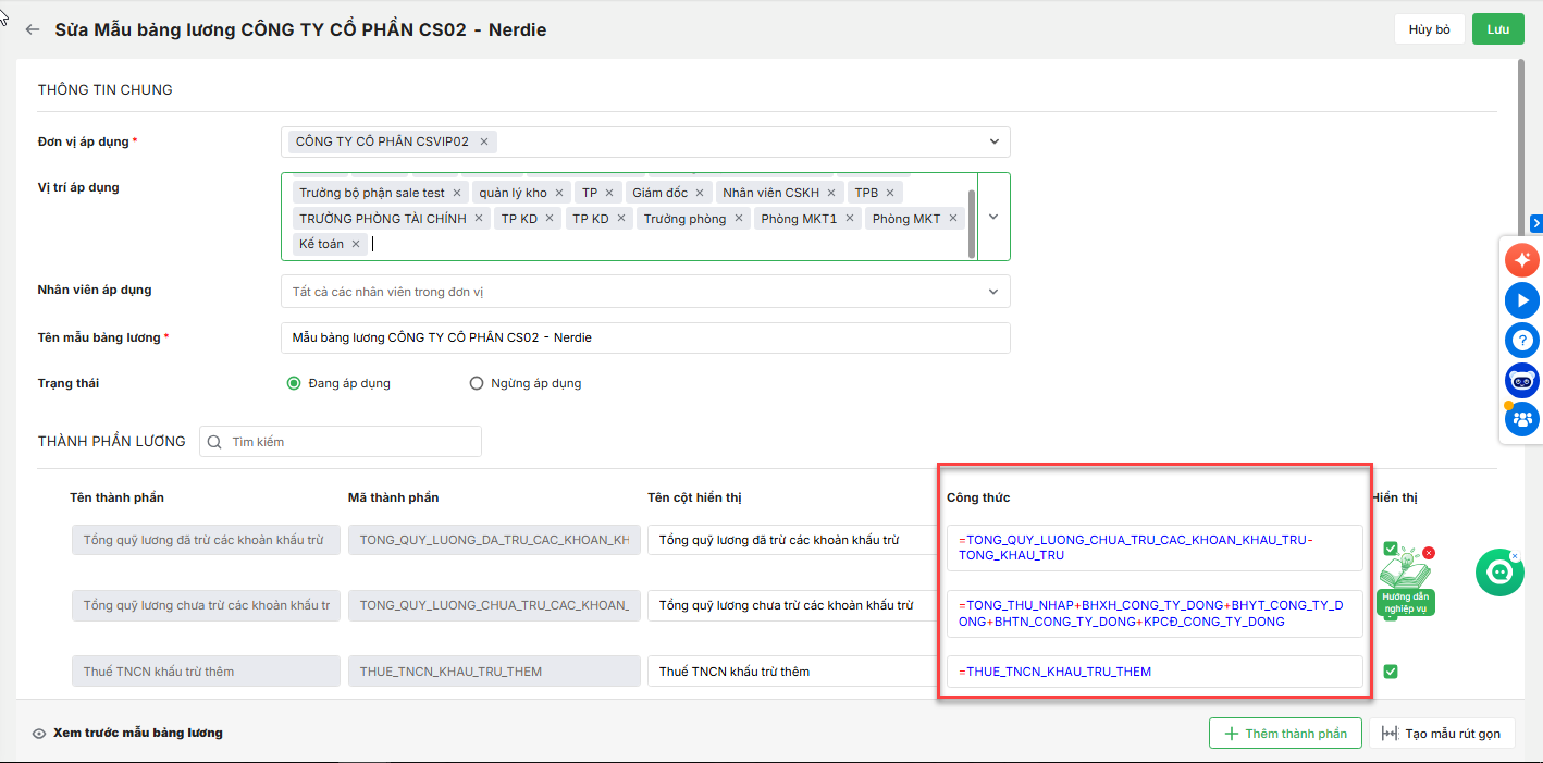 - Nhấn Thêm mới / Sửa mẫu bảng lương