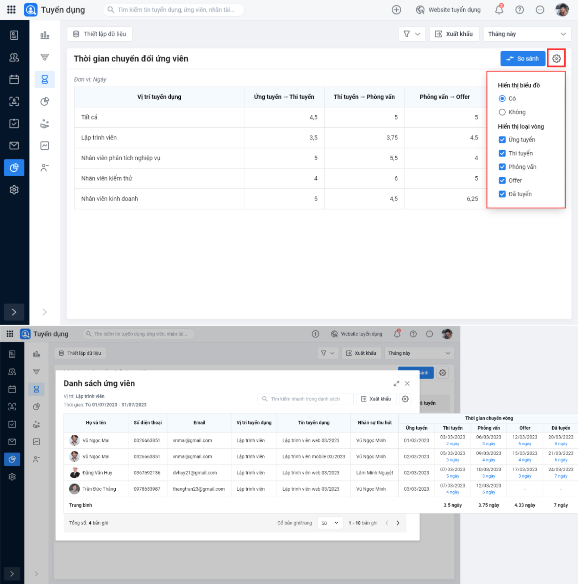 Nội dung bài viết: Hướng dẫn báo cáo Thời gian chuyển đổi ứng viên.