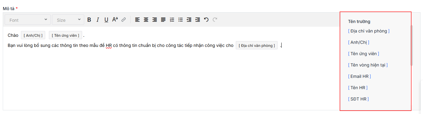 Về phần Mô tả, phần mềm đã hiển thị sẵn Tên trường cho Anh/Chị lựa chọn để viết mô tả