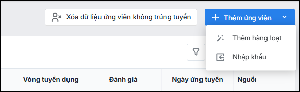 cạnh chức năng Thêm ứng viên\ chọn Thêm hàng loạt.
