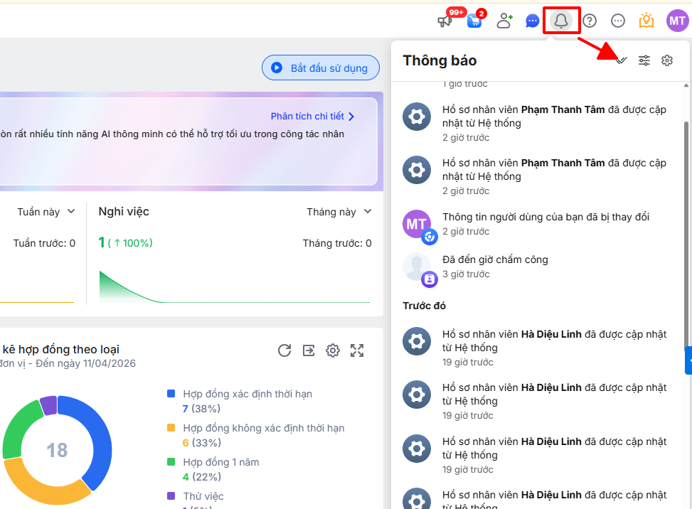 Bước 1: Nhấn vào biểu tượng Thông báo ![]()