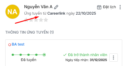 Cách 2: Mở chi tiết Hồ sơ ứng viên\ xem nguồn tại mục Ứng tuyển từ….