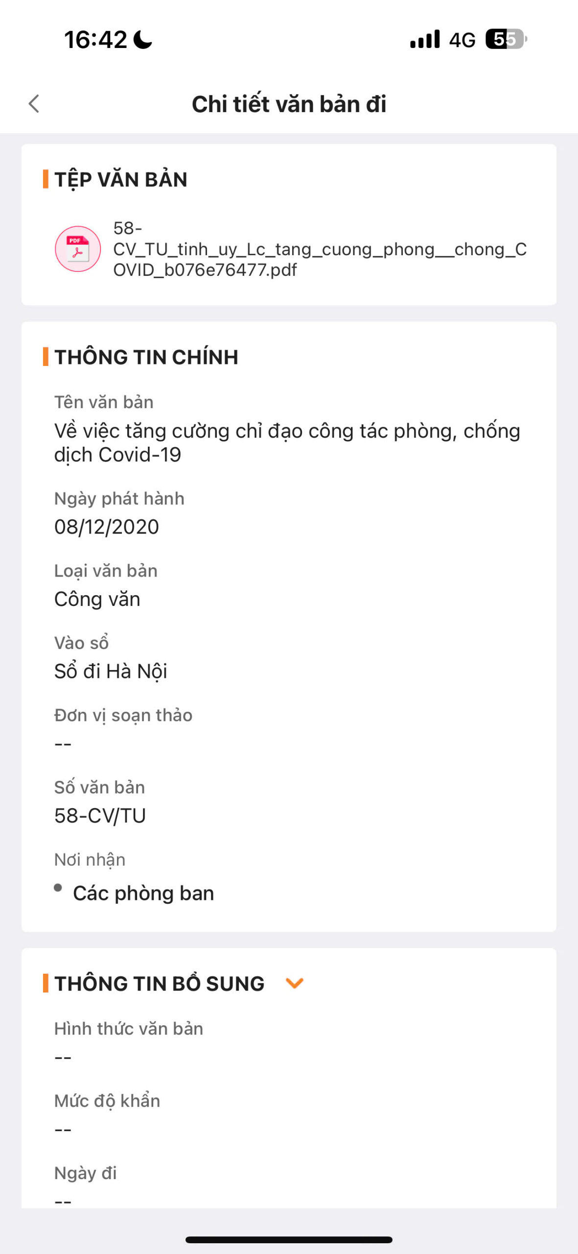 - Thông tin bổ sung: Các thông tin liên quan khác như Người ký, Mức độ khẩn, Mức độ mật…