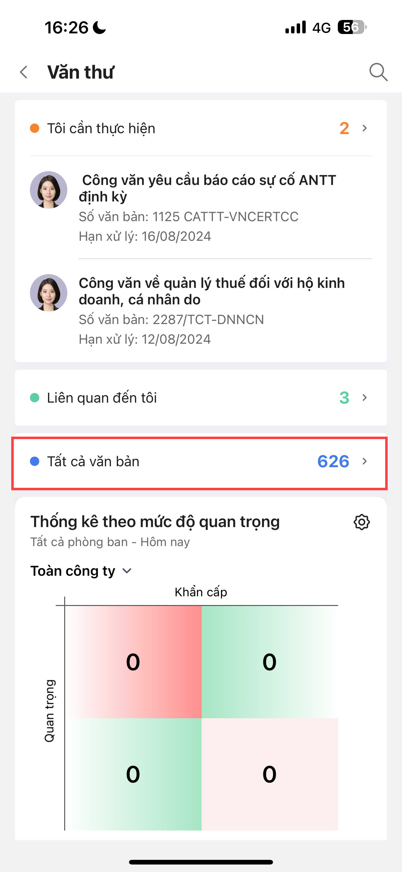 1. Tại màn hình chính, nhấn vào mục Tất cả văn bản.