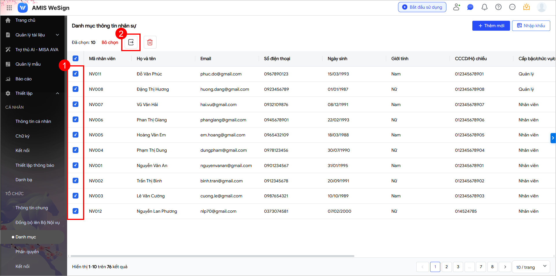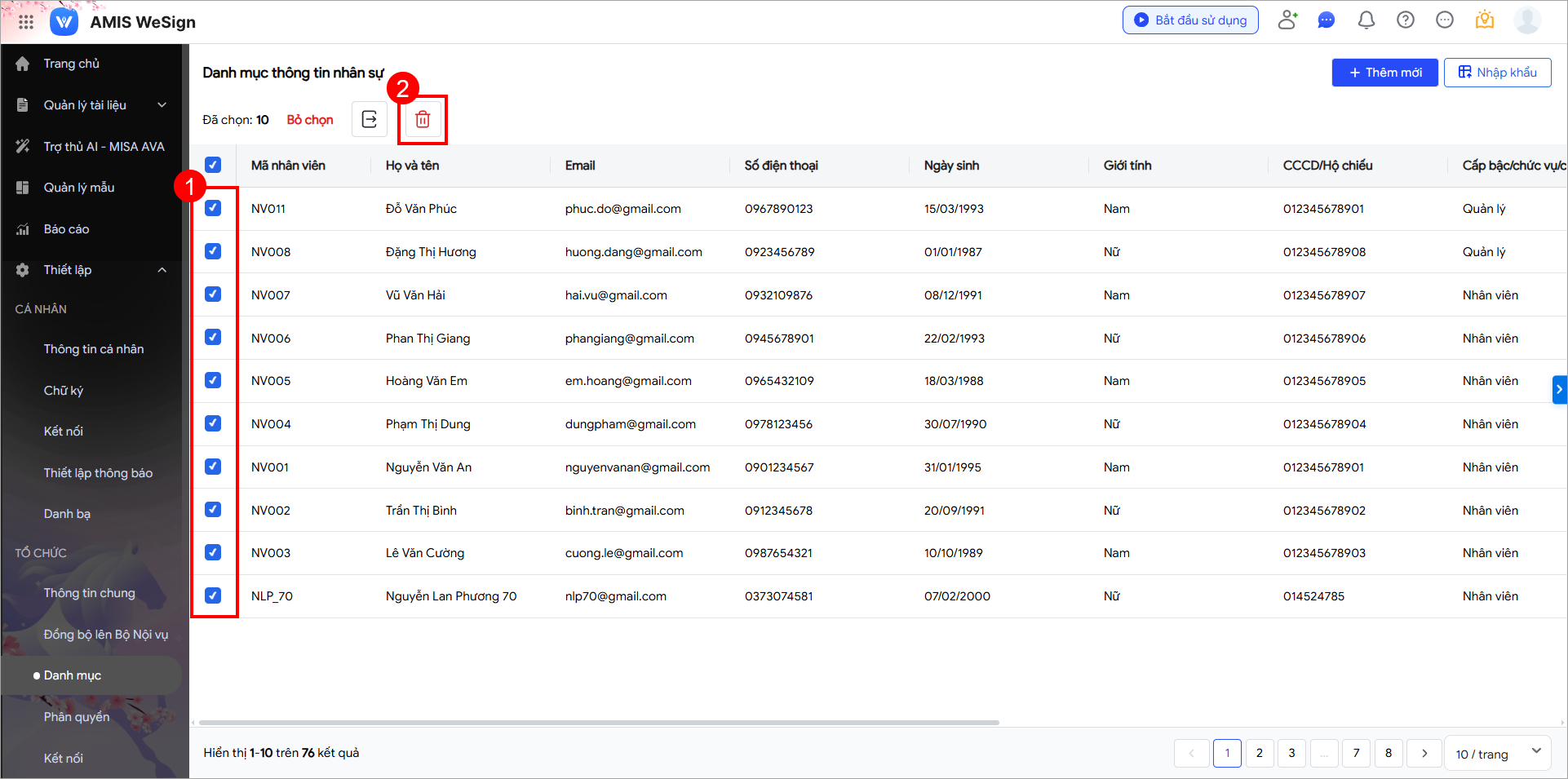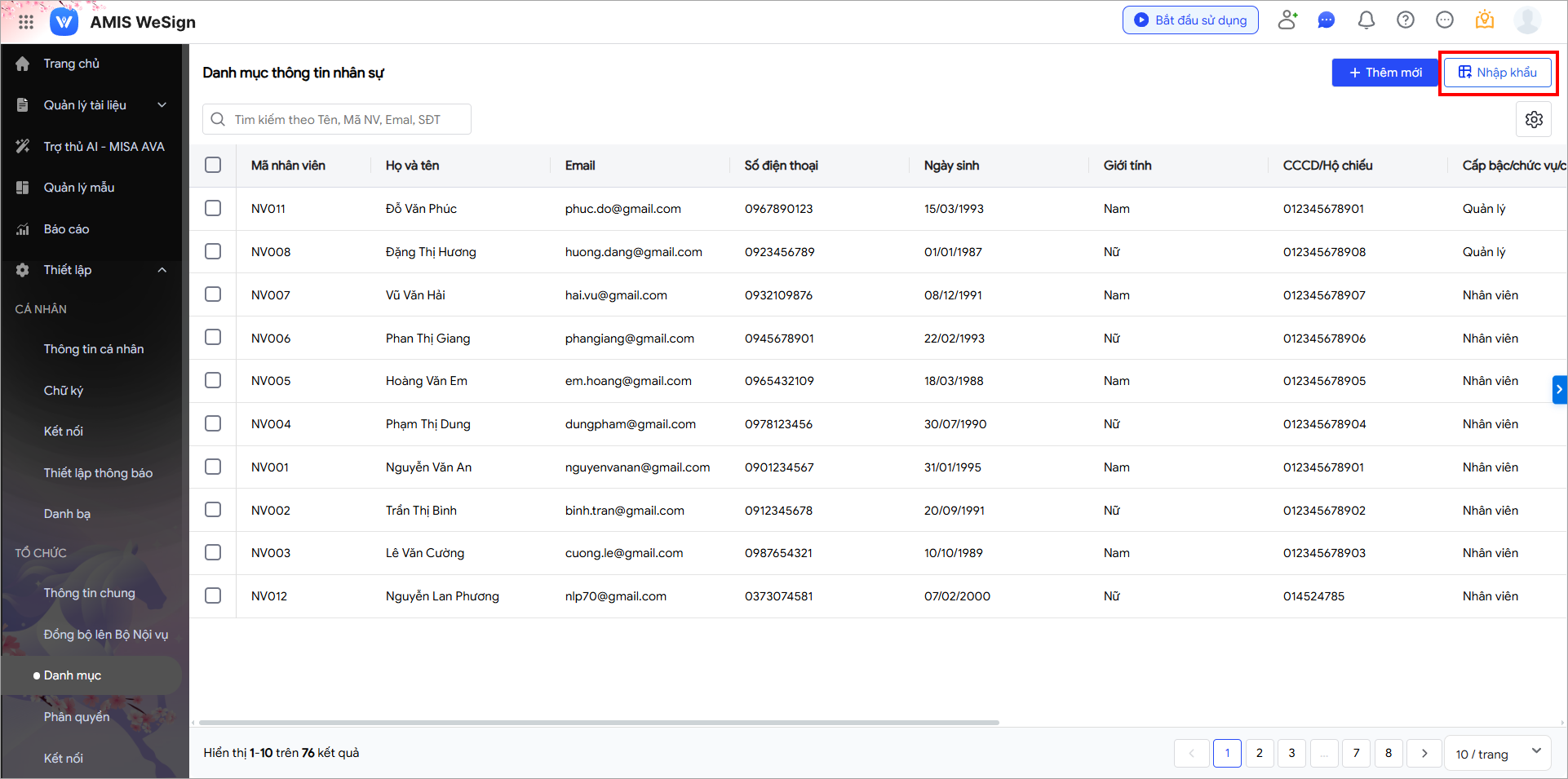 Bài viết hướng dẫn tạo và quản lý danh mục thông tin nhân sự trên AMIS WeSign.