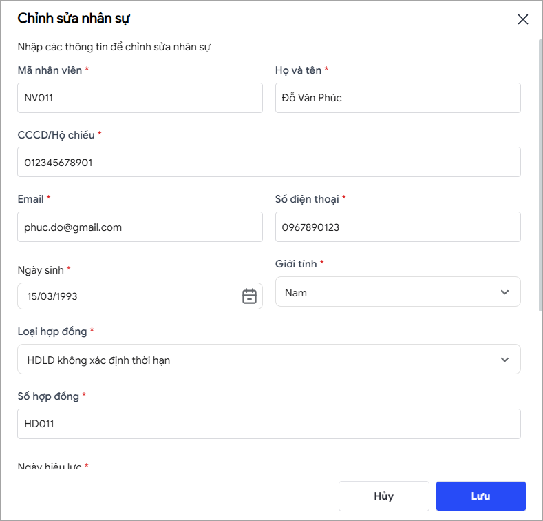 Di chuột vào dòng thông tin nhân sự cần chỉnh sửa và nhấn biểu tượng