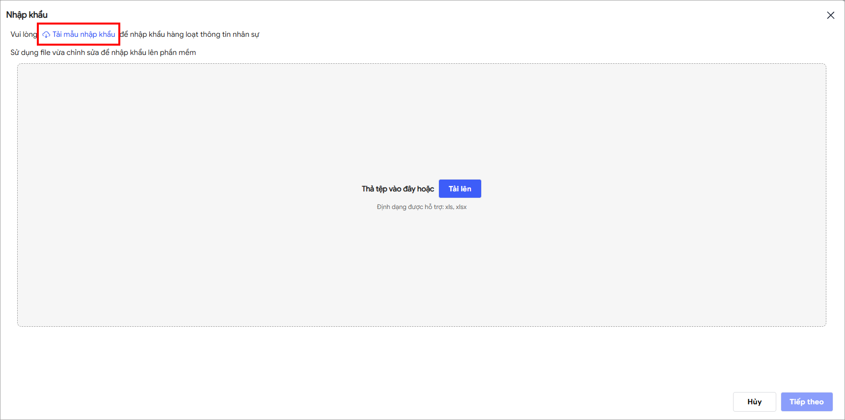 Nhấn Tải mẫu nhập khẩu để tải về tệp mẫu.
