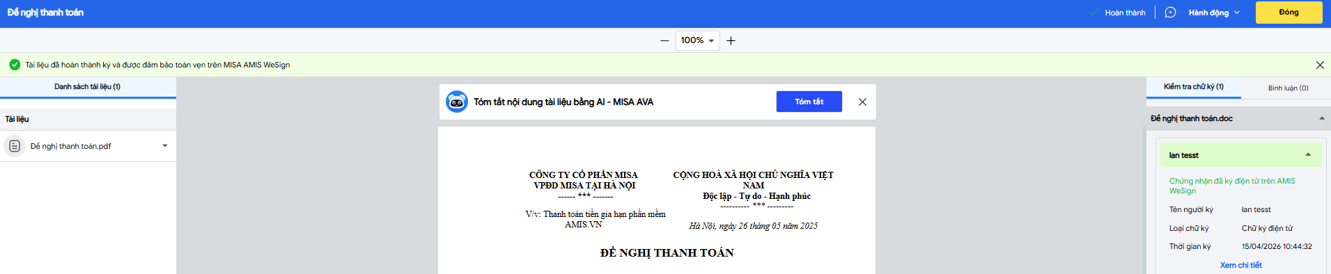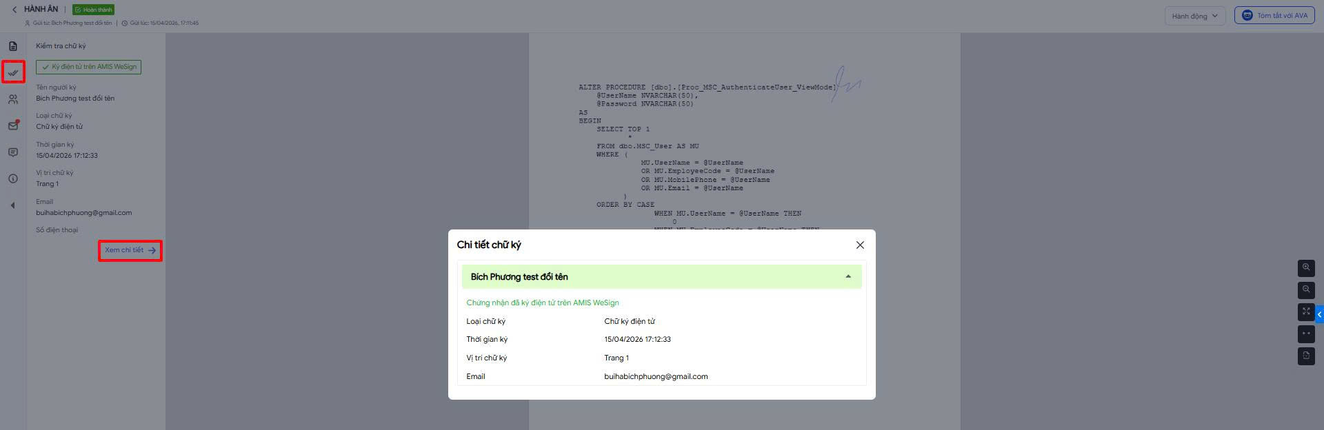 • Hướng dẫn kiểm tra tính hợp lệ của chữ ký số trên AMIS WeSign khi xem trên phần mềm và email.
