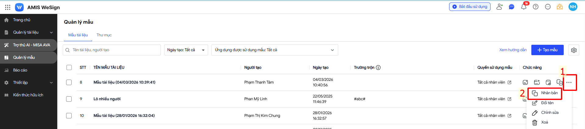- Hướng dẫn nhân bản mẫu tài liệu từ mẫu đã có.