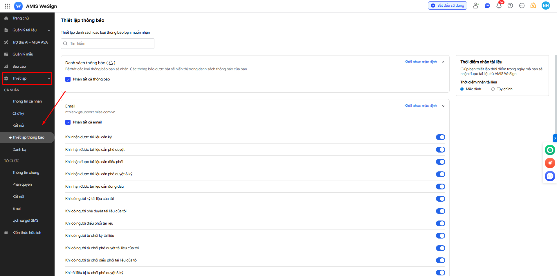 Bài viết hướng dẫn thiết lập nhận và quản lý thông báo trên AMIS WeSign, đảm bảo không bỏ lỡ các cập nhật quan trọng về tài liệu và hoạt động liên quan.