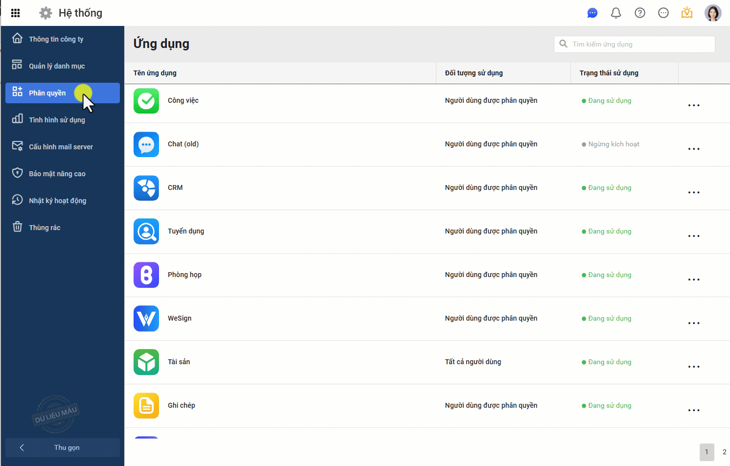 4. Nhấn Lưu, những người dùng này sẽ được phân quyền vào ứng dụng.