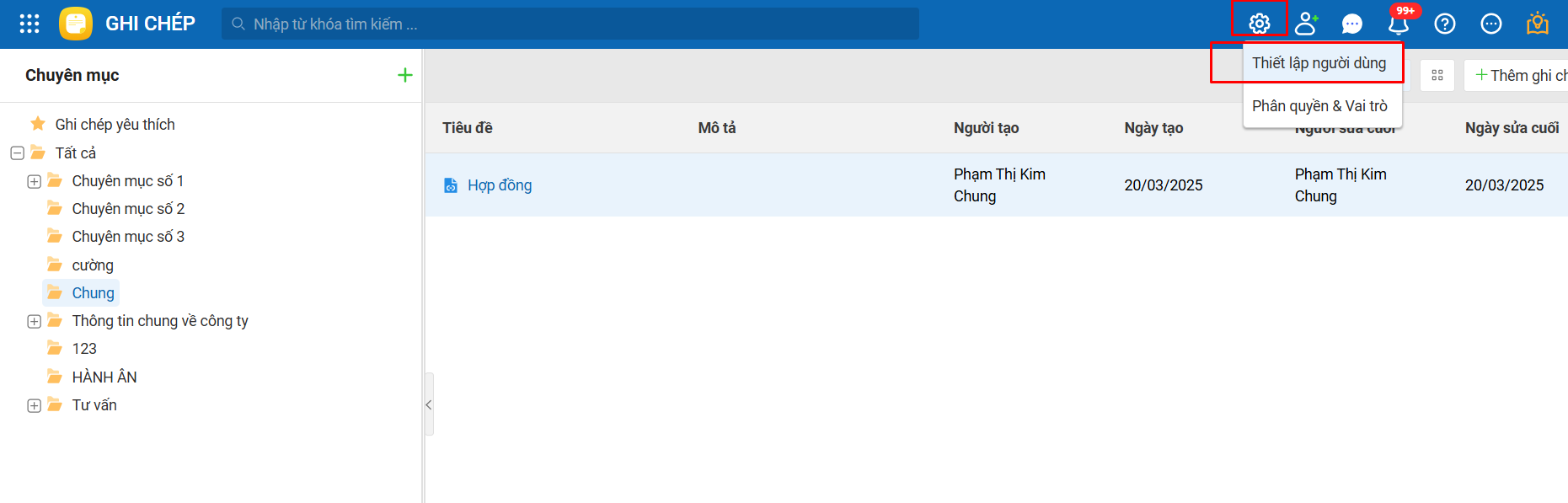 Nội dung bài viết gồm: Cách thêm và phân quyền cho người dùng vào ứng dụng Amis Ghi chép.