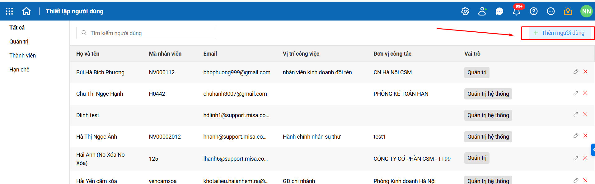 Bước 2: Trên danh sách người dùng ứng dụng\ Nhấn Thêm người dùng.