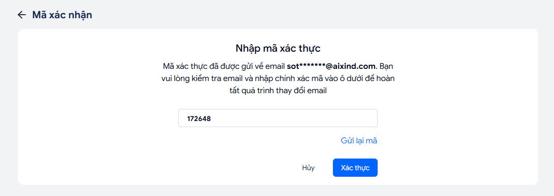- Truy cập Email mới lấy mã xác thực => nhập vào ô xác thực => nhấn Xác thực.