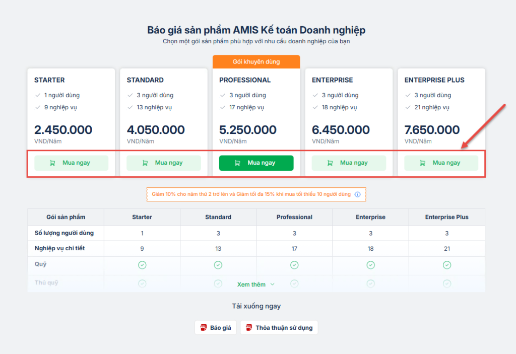 - Trên màn hình sẽ hiển thị các gói sản phẩm, chọn gói phù hợp với nhu cầu sử dụng rồi nhấn Mua ngay.