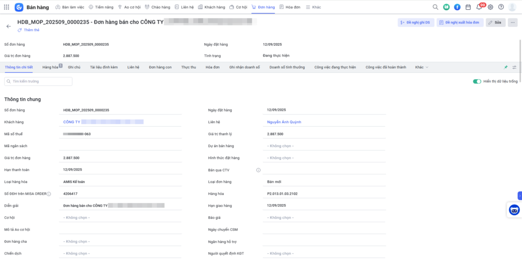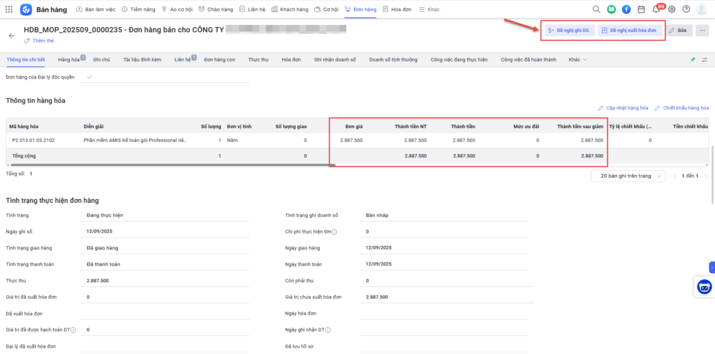 3.3. NVKD đề nghị ghi Doanh số và xuất hóa đơn cho đơn hàng trên MISA AMIS CRM