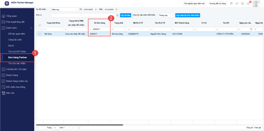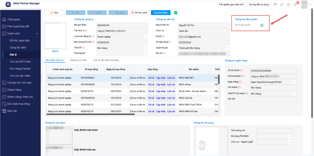 - Nhân viên kinh doanh (NVKD) kiểm tra đại lý được đánh dấu là Đại lý độc quyền (ĐLĐQ) trên MISA Partner Manager.