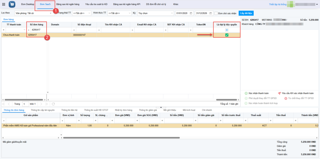 Bước 3: Kiểm tra thông tin đơn hàng đã được đánh dấu là đơn hàng Đại lý độc quyền