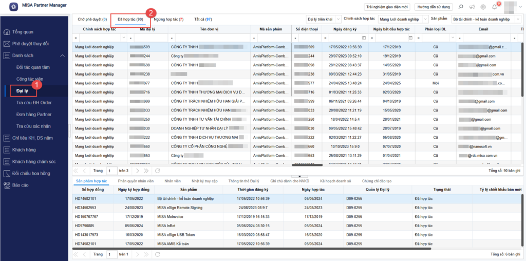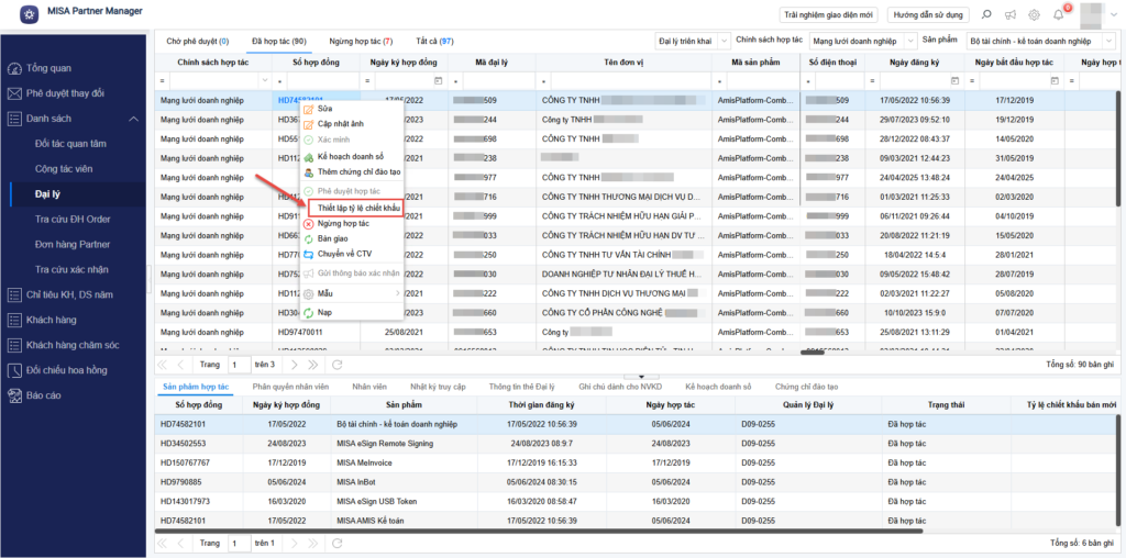- Trên phân hệ Đại lý, chọn Đã hợp tác.
