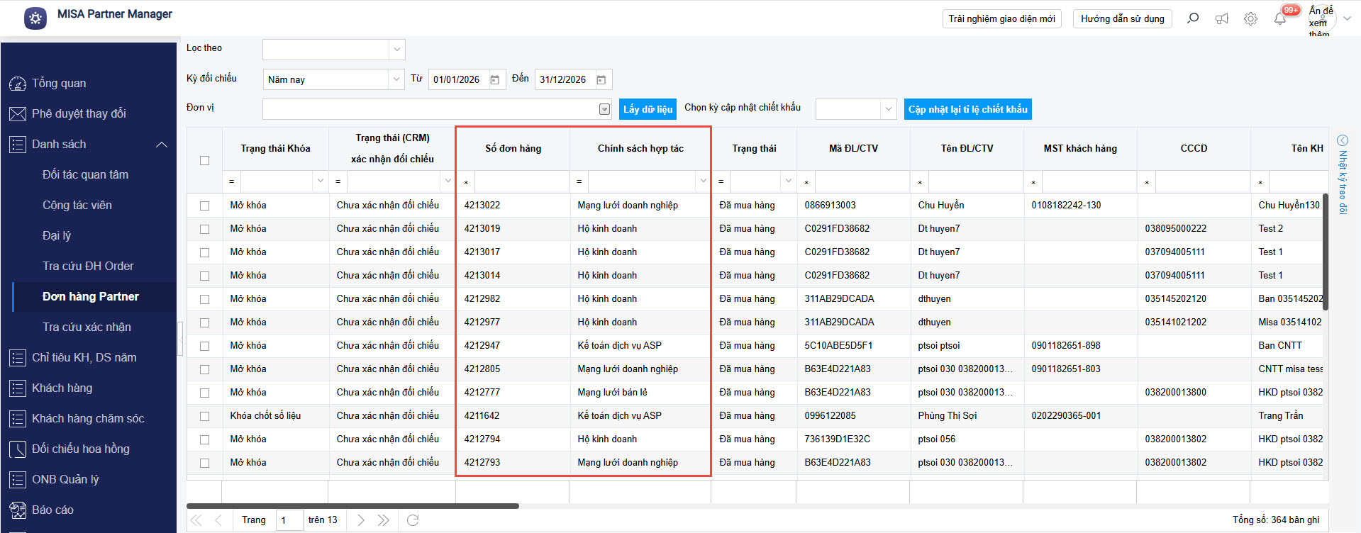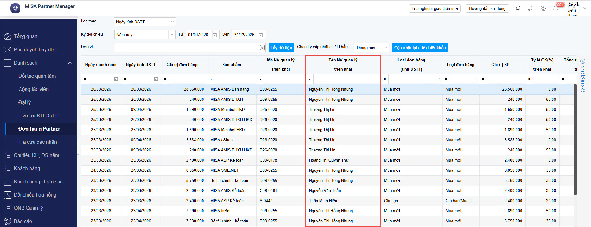 - Mục đích: giúp NVKD kiểm tra đơn hàng vào kỳ đối chiếu trên Partner Manager.
