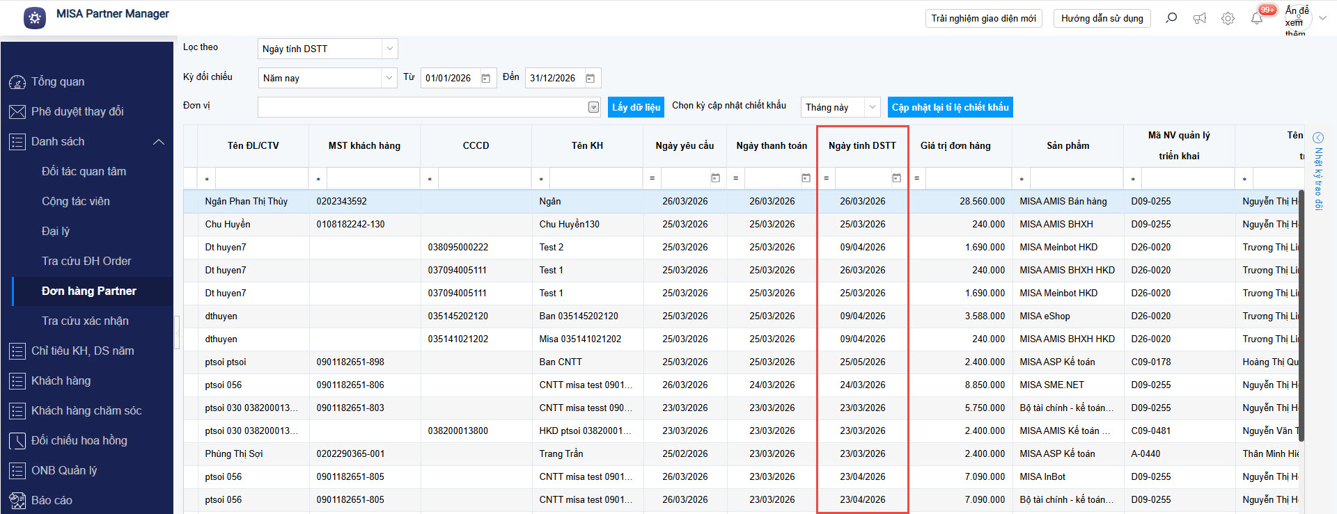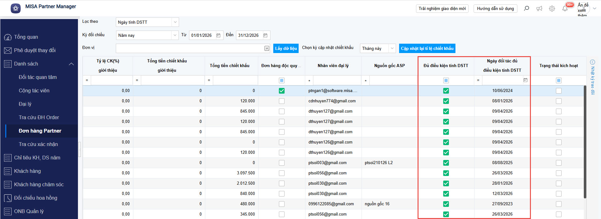 Ví dụ: Kỳ đối chiếu hoa hồng tháng 3/2026 => Ngày đối tác đủ điều kiện tính DSTT là ngày ≤ ngày 31/03/2026.