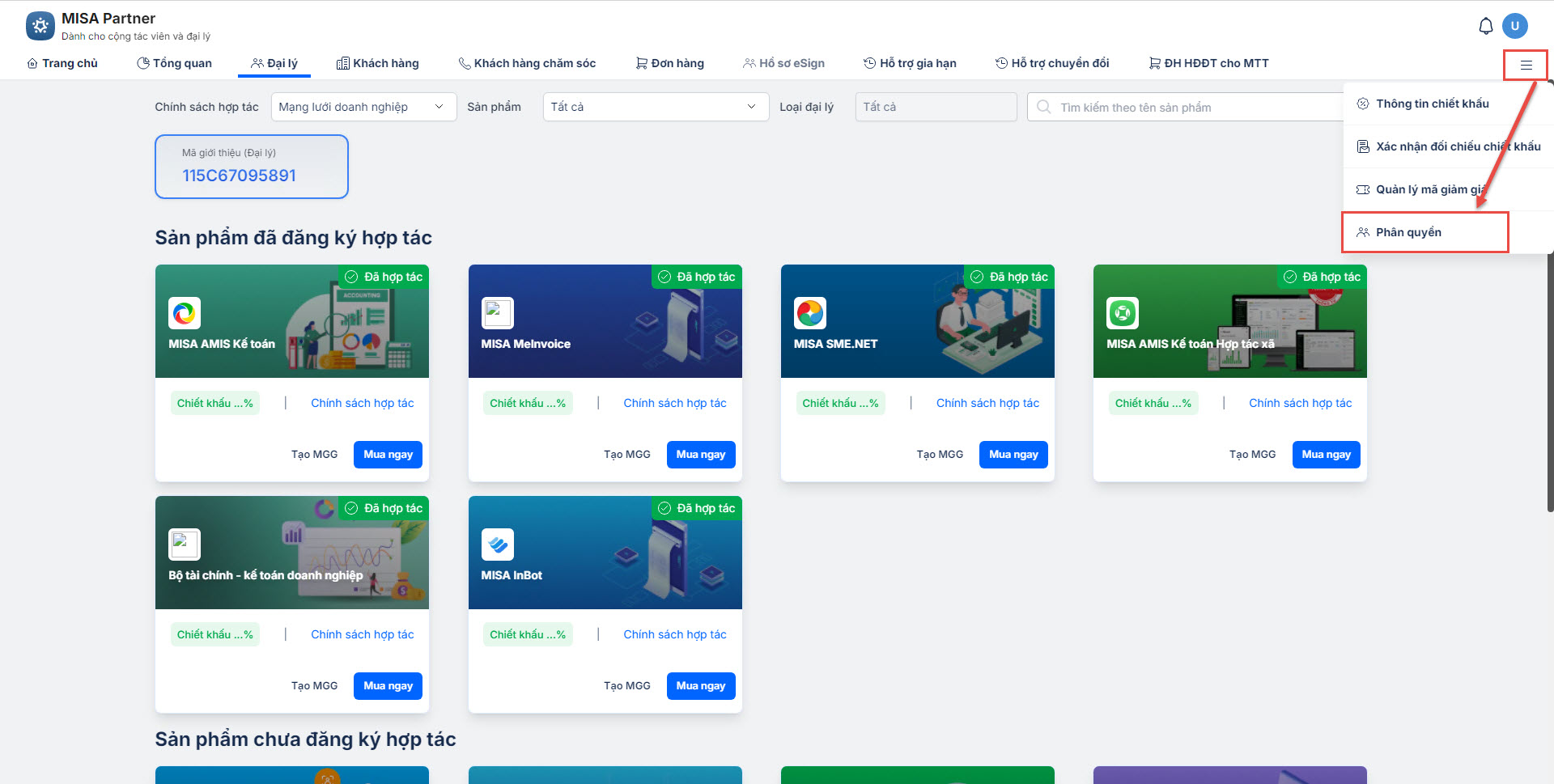 Bước 1: Truy cập MISA Partner phân quyền