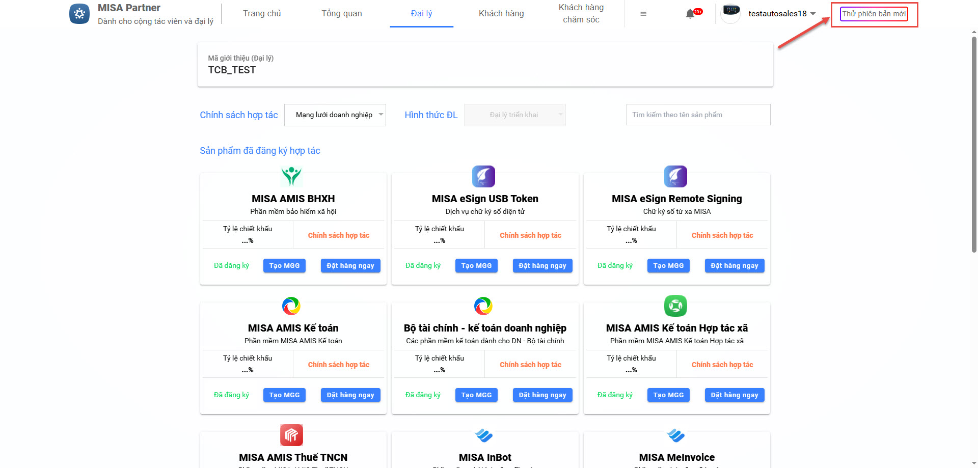 - Vui lòng cập nhật giao diện mới nhất để sử dụng tính năng, anh/chị nhấn Thử phiên bản mới.