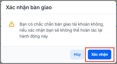 - Anh/chị nhấn Bàn giao chủ tài khoản => chọn tài khoản và chức vụ sau khi bàn giao.
