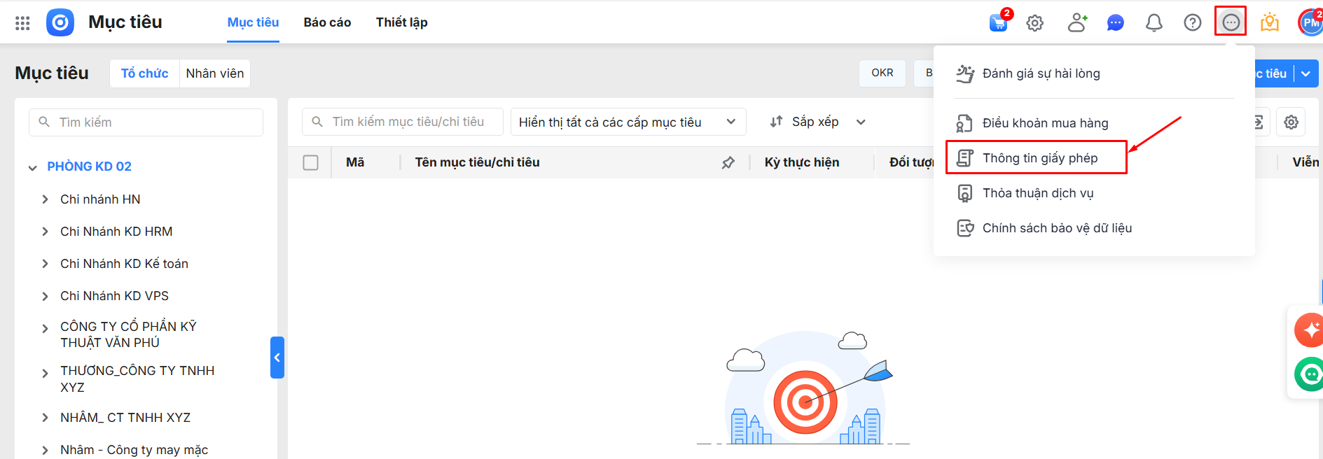 Bước 1: Tại mục Tiện ích/Giấy phép sử dụng.