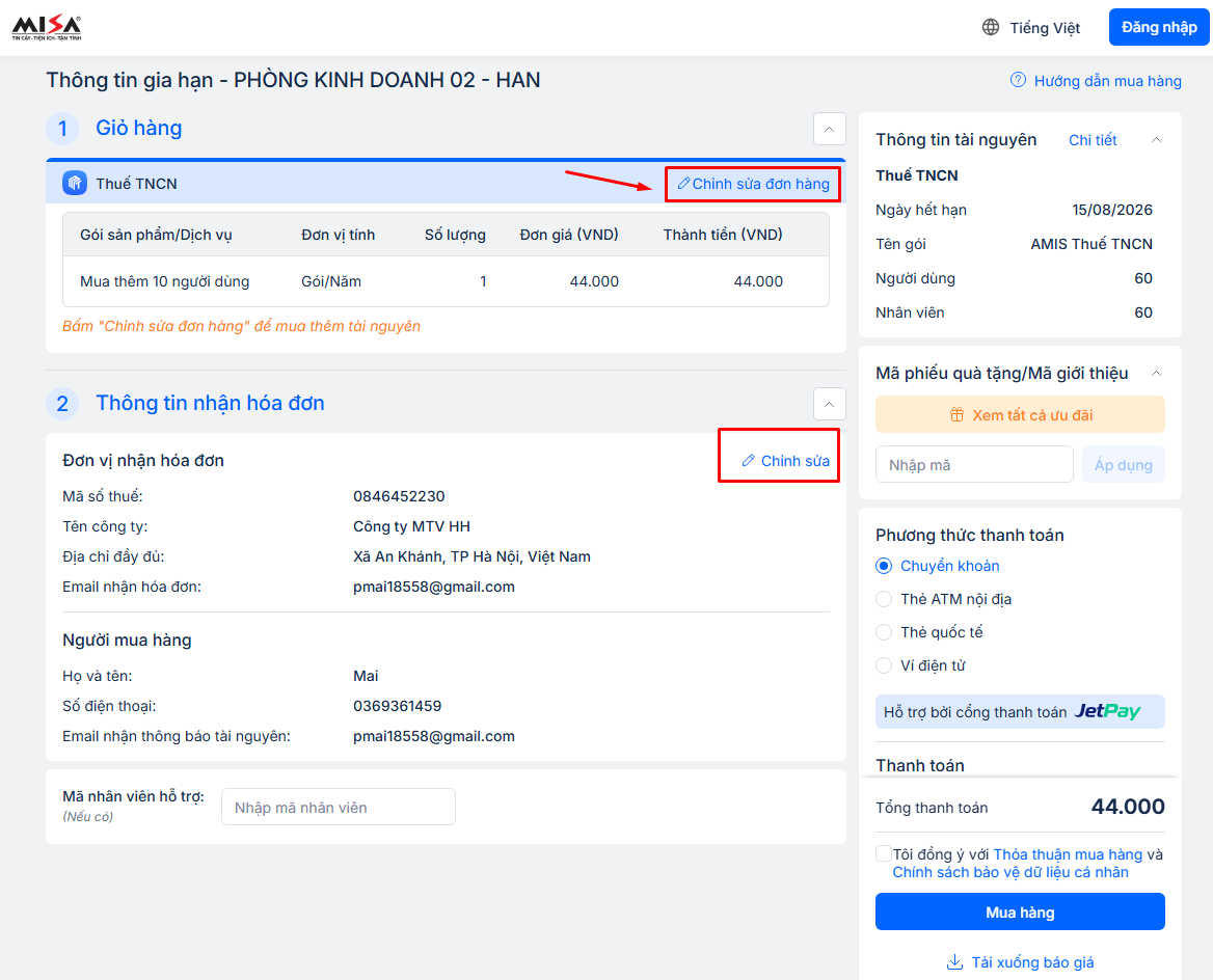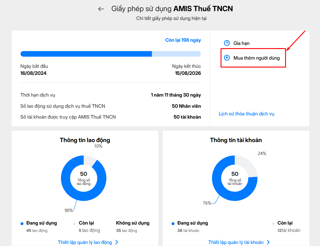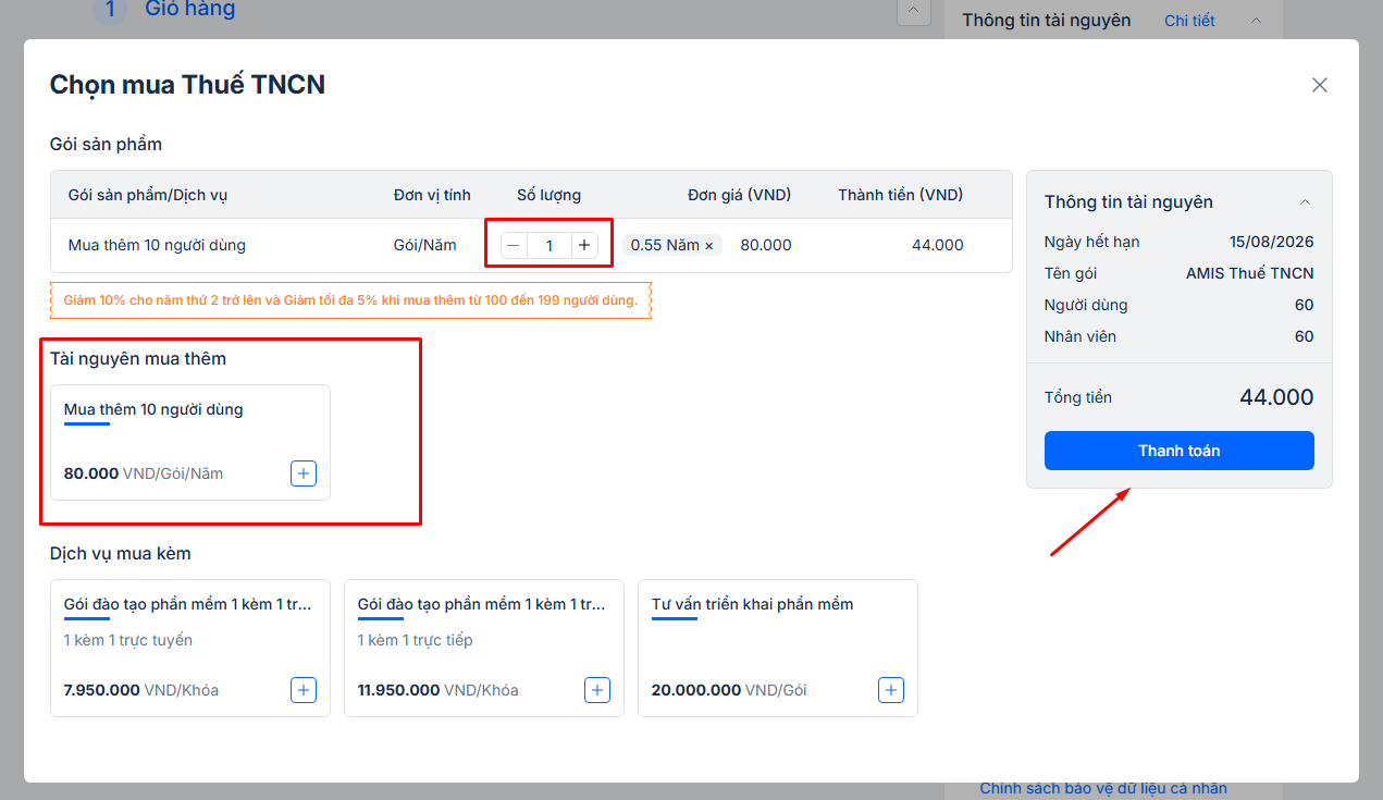 3. Hướng dẫn mua thêm tài nguyên AMIS Thuế TNCN
