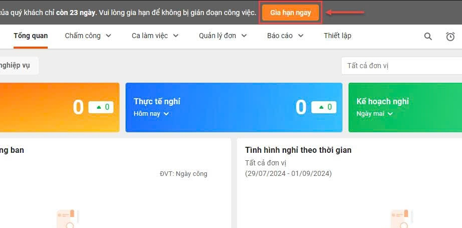 Khi sắp hết thời gian sử dụng, tương tự ở các phần mềm đều hiển thị cảnh báo nhắc nhở gia hạn, nhấn Gia hạn ngay trên câu cảnh báo.