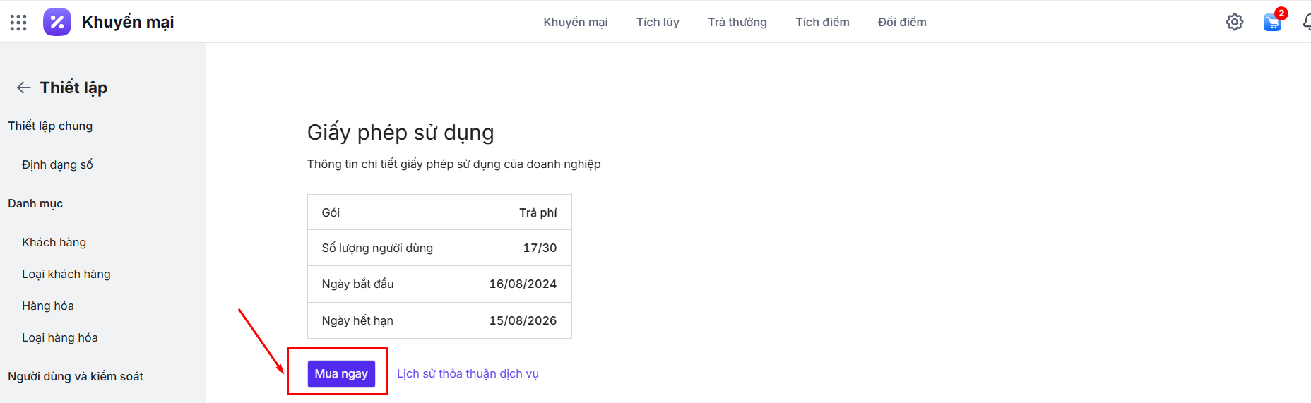 Hướng dẫn gia hạn, mua thêm tài nguyên phần mềm AMIS Khuyến mại – MISA Store