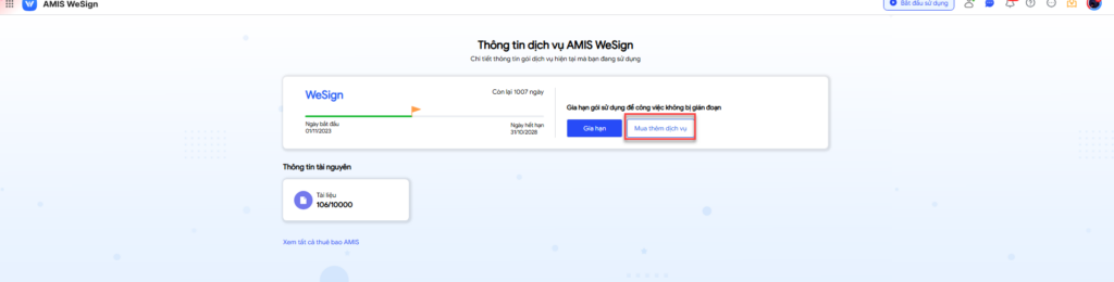 3. Mua thêm tài nguyên trên AMIS Wesign