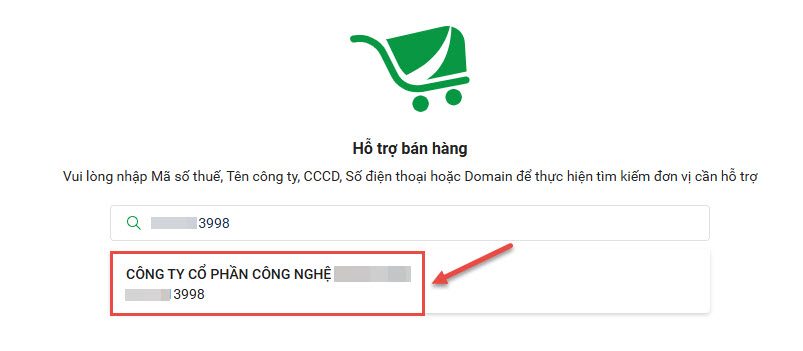 • Nhập Mã số thuế, Tên công ty, CCCD, Số điện thoại hoặc Domain của Khách hàng để tìm kiếm.