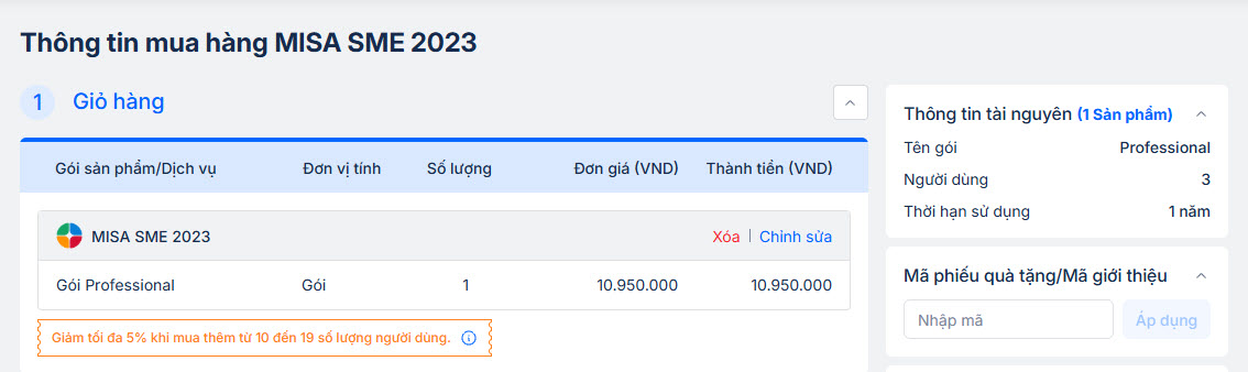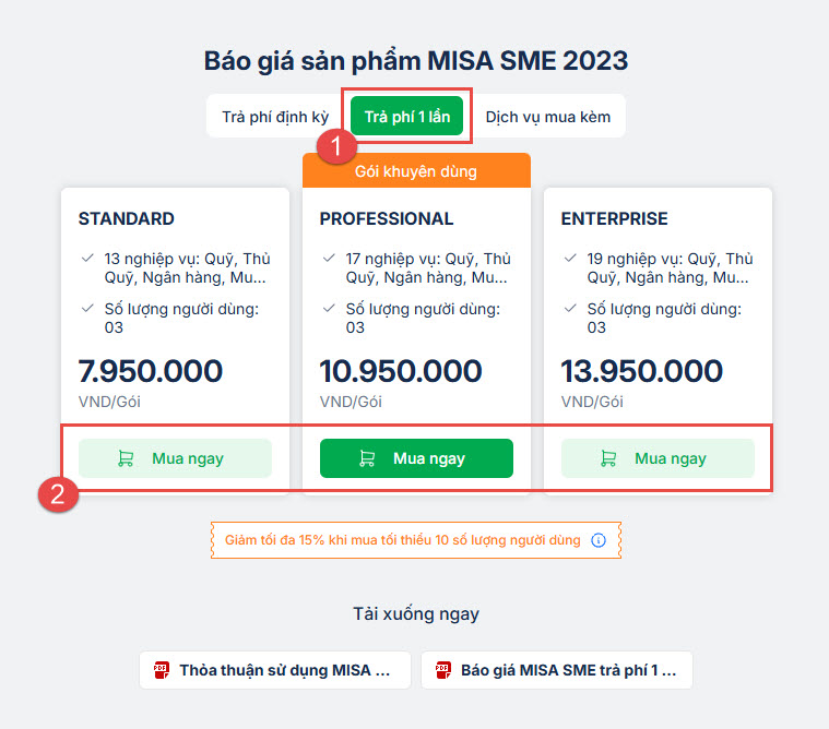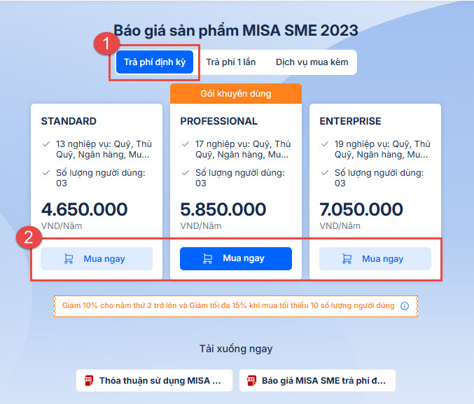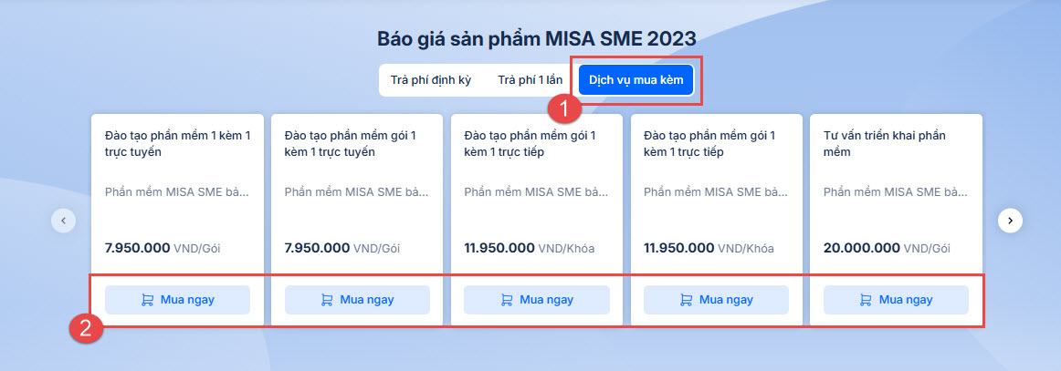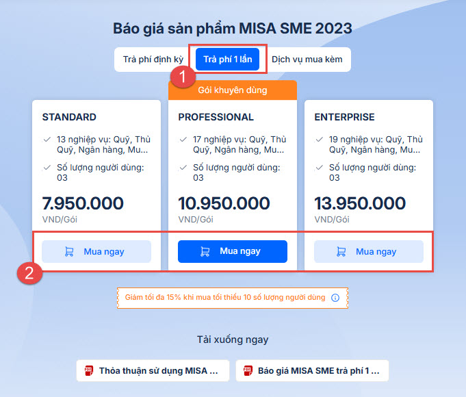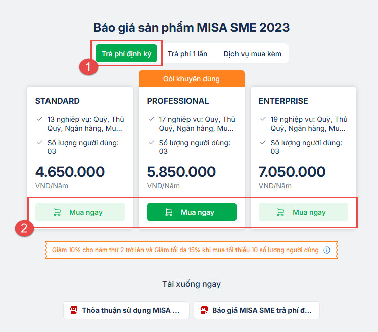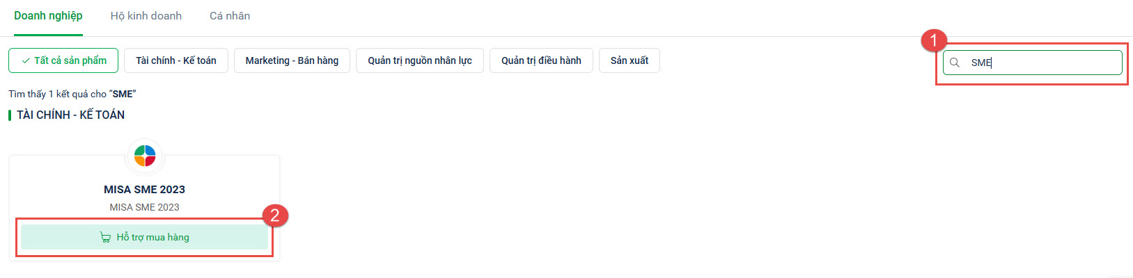 Bước 2: Chọn mua sản phẩm MISA SME 2023
