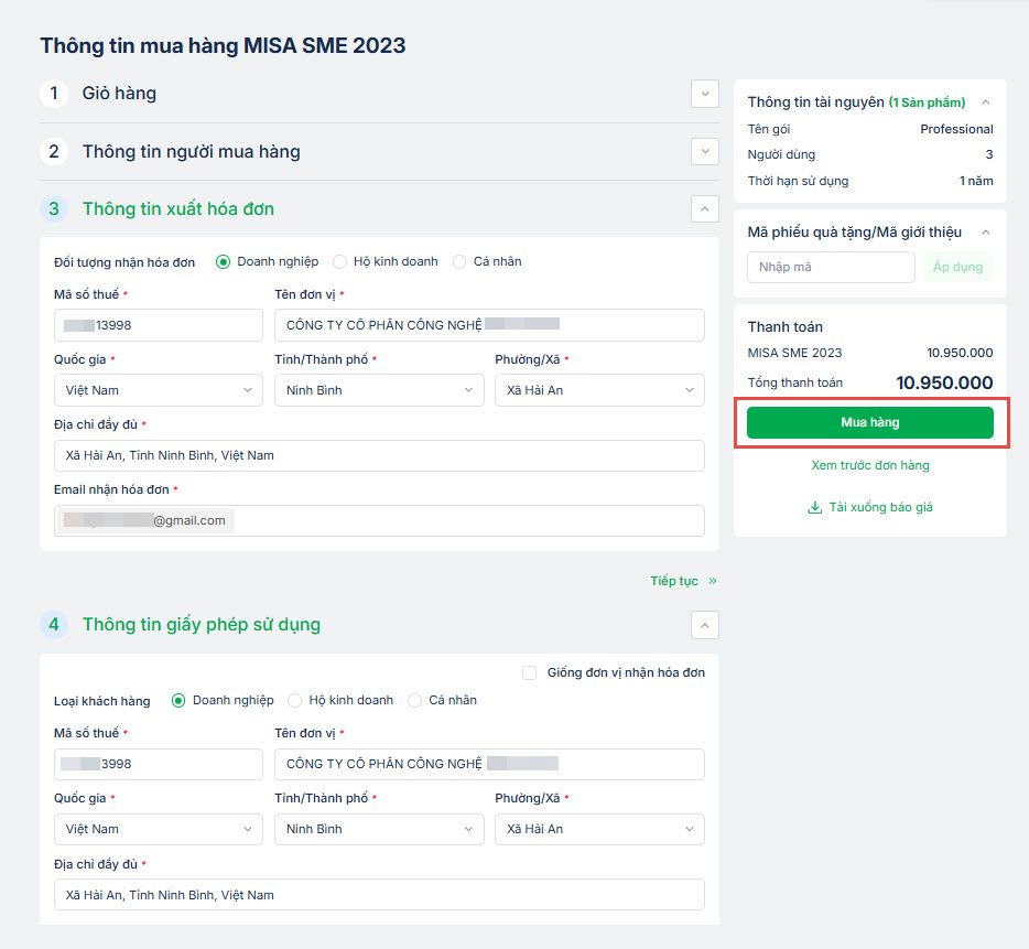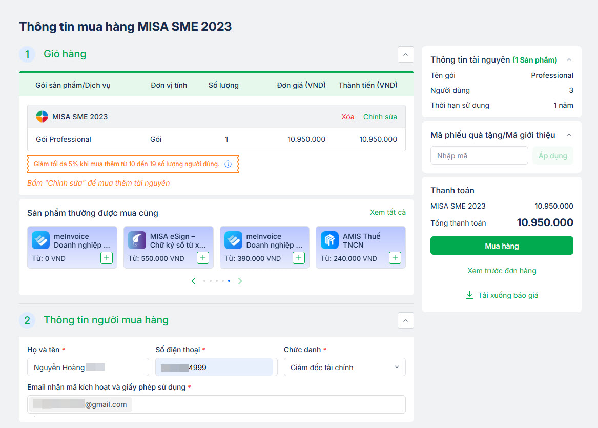 3. Hướng dẫn Khách hàng và NVKD mua mới SME trên MISA Store