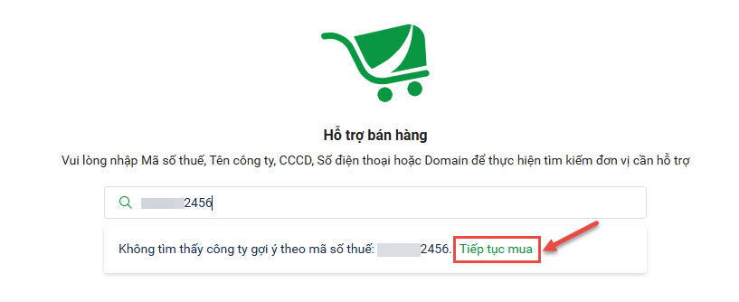 • Nếu Khách hàng chưa từng mua sản phẩm nào của MISA: nhấn Tiếp tục mua để Hỗ trợ mua mới.