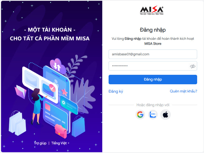 • Nếu đã có tài khoản MISA ID thì thực hiện đăng nhập.