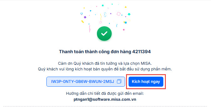 • Sau khi thanh toán thành công đơn hàng, anh/chị nhấn Kích hoạt ngay.