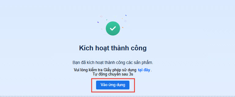 • Kích hoạt thành công, anh/chị nhấn Vào ứng dụng để thiết lập và bắt đầu sử dụng.