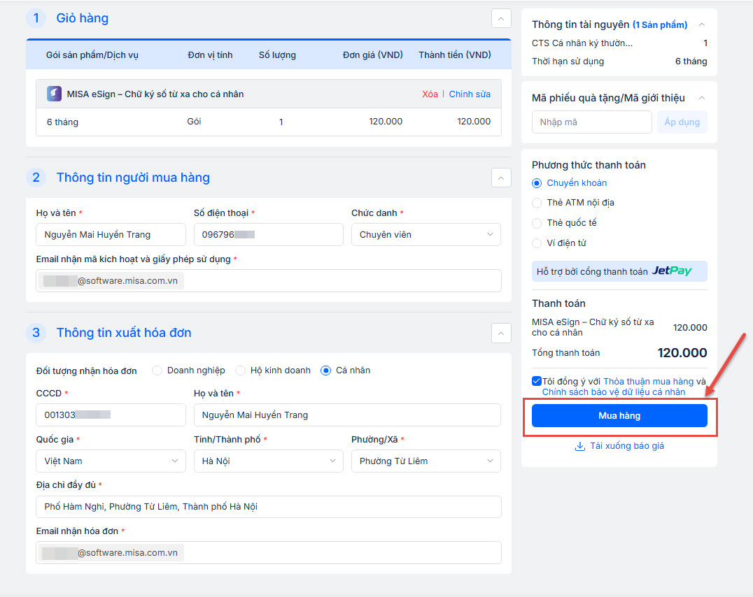 Bước 2: Nhập thông tin mua hàng và thanh toán