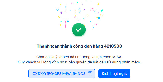- Sau khi thanh toán thành công, anh/chị vui lòng thực hiện kích hoạt tại thông báo trên màn hình hoặc thực hiện theo hướng dẫn kích hoạt đã được gửi qua Email.