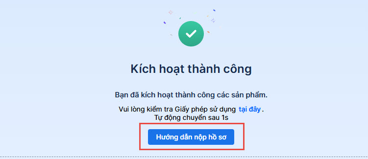 - Kích hoạt thành công, anh/chị vui lòng nộp hồ sơ để bắt đầu sử dụng.